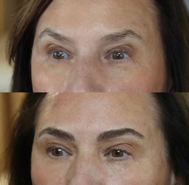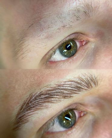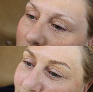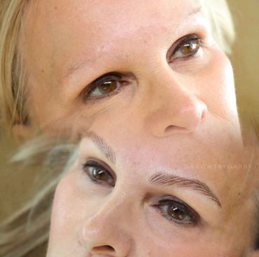 Immediately after, the area will be a little darker than the healed result and will continue to darken over the next 48 hours. Within the next 3-7 days you will notice very small scabs form along the eyebrow area however if you do not notice your eyebrows scab at all, this is normal as well! 30-50% of your pigment will be contained within the scabs. Some clients may experience a temporary warm colour to the pigment which will neutralize within the next few days. Over the next 7-14 days your scabs should flake off little by little. Absolutely do NOT pick at the scabs and make sure you follow the aftercare instructions closely to obtain the best results. If the scabbing phase is not over after 14 days, please continue your aftercare instructions until scabs are completely gone. After the scabbing phase is over, you will notice that the colour of your pigment seems foggy and muted in colour because a layer of skin has grown over the pigment to seal it in. Not to worry, over the next several weeks, your skin will regenerate and the pigment will be more vibrant in once again. The complete healing process takes no less than 4 weeks which is when the true orientation of the pigment will show. Remember, when completely healed, you will loose 20%-30% of the colour and thickness.