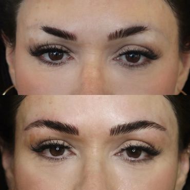 The first appointment is about structure, design, and building hair strokes. The touch-up is about seeing how the skin heals and retains pigment, as well as making any necessary adjustments to achieve better symmetry, definition, or volume. In most cases, only a minor touch-up is necessary to fill in any sparse areas for a very natural look. However, if you are opting for a fuller more defined look, then the touch-up is recommended to achieve desired results. Any further touch ups will be listed at browbydarby.com under prices.